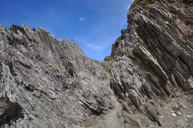 Le sentier grimpe raide, bien marqué, direction globale S.
